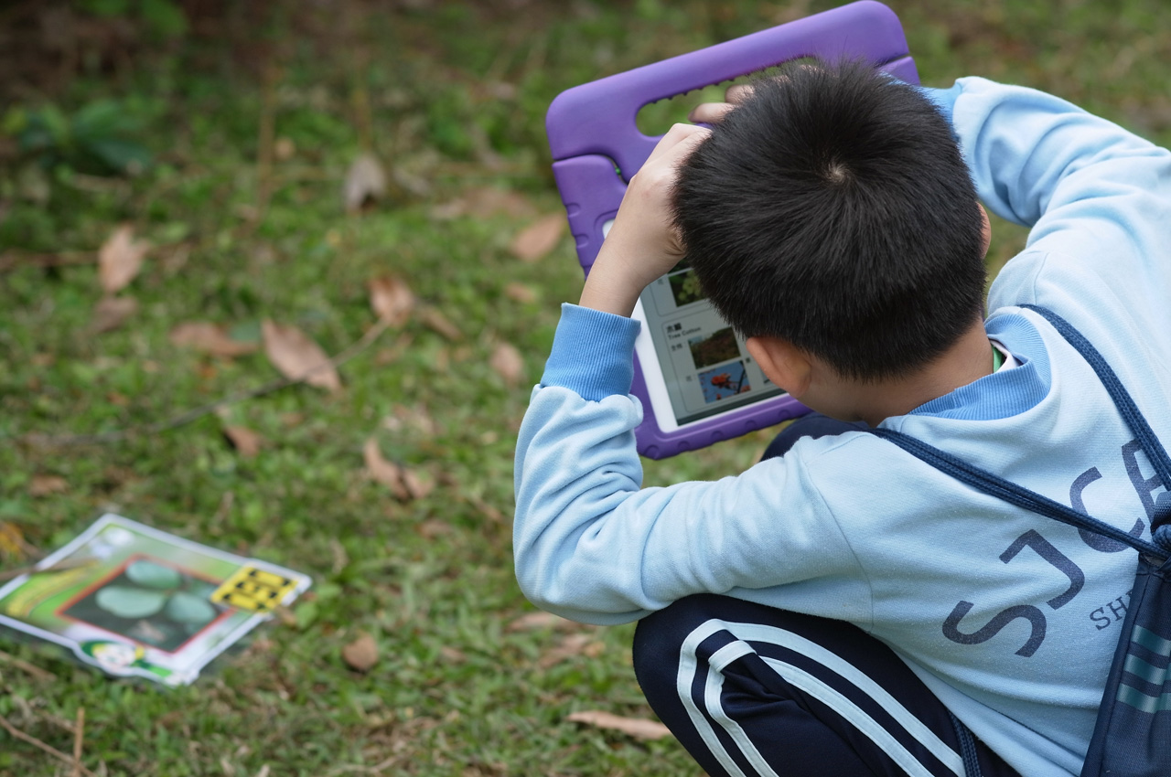 檢查植物、查找圖鑑、記錄答案,隊員間分工仔細流暢。